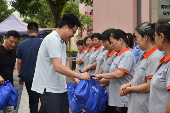 三伏天以來,宿遷地區(qū)氣溫節(jié)節(jié)攀高,連日高溫天氣給一線勞動者帶來了嚴峻考驗。為切實做好防暑降溫工作,保障一線勞動者的身體健康安全, 8月14日,建發(fā)公司組織開展“一線送清涼”高溫慰問活動。公司副總經(jīng)理倪松、相關(guān)部門負責人共同參加了慰問。