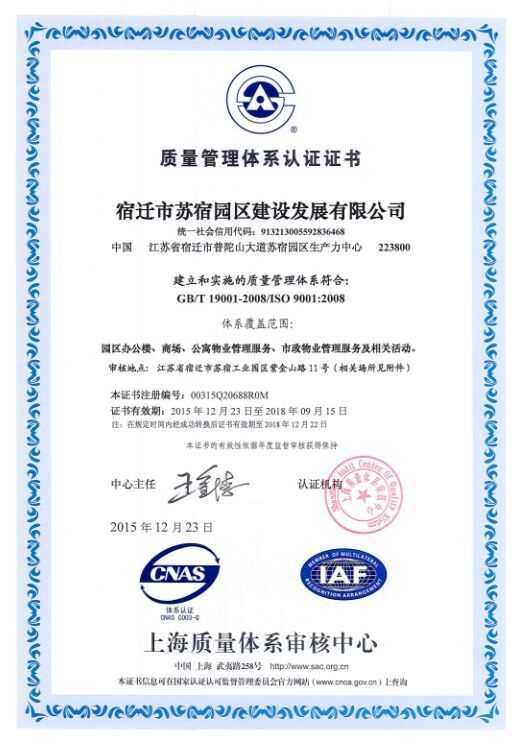 2016年1月份,公司正式獲得由上海質(zhì)量認證中心頒發(fā)的ISO9001質(zhì)量管理體系認證證書。