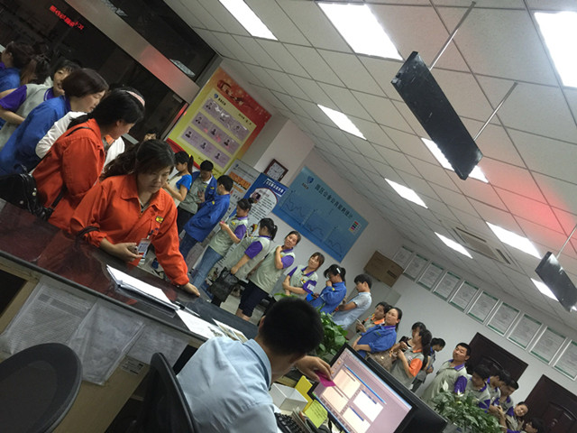 (圖為一站式服務(wù)中心排隊(duì)辦業(yè)務(wù)的住戶)